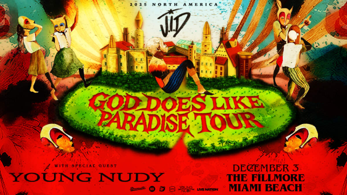 J.I.D brings his electrifying energy and lyrical prowess to South Florida with the "God Does Like Paradise Tour", making a highly anticipated stop at The Fillmore Miami Beach on December 3, 2025. Known for his intricate wordplay and genre-defying sound, J.I.D continues to push creative boundaries, and this tour promises a surreal and immersive experience, as reflected in the vibrant, fantasy-inspired artwork promoting the event. Joining him as a special guest is fellow Atlanta native Young Nudy, adding a dynamic layer to the night’s lineup. Presented by Live Nation, this show is set to be a standout moment in Miami’s winter concert season, drawing fans of alternative hip-hop, lyrical storytelling, and Dreamville’s signature artistry.