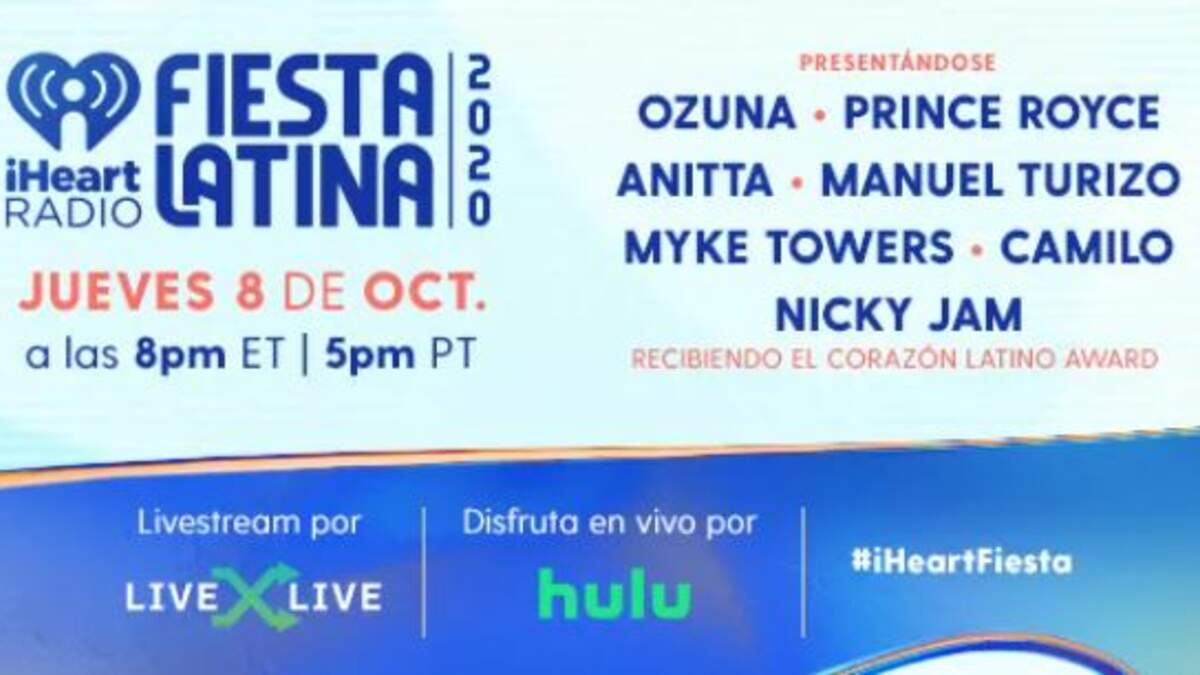 Los artistas más importantes de nuestra comunidad latina van a presentarse en una noche inolvidable llena de los más grandes hits. ¡Únete a esta fiesta de celebridades latinas e influencers de forma virtual en la iHeartRadio Fiesta Latina 2020! ¡Celebremos la hispanidad y nuestra cultura!