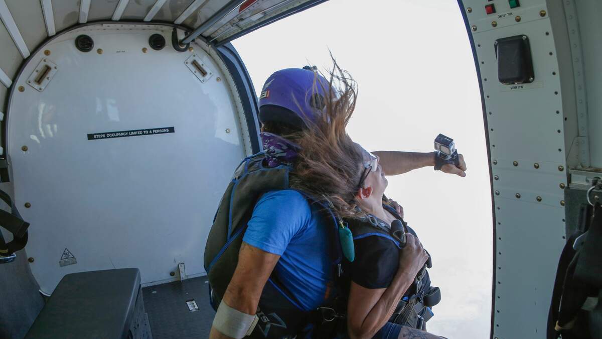 Reason number 1203281029382019832091823 why I DONT want to go skydiving lol. Ay dios mio, como dice Karol G, no puedo imaginar lo que yo haría en esta situación. An amateur skydiver and her instructor are lucky to be alive cuando lanzaron del avión, and got stuck on the landing gear!
